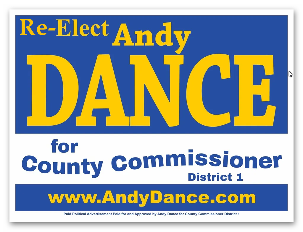 Placing a yard sign shows dedicated support and magnifies name recognition. It is important to have signs strategically located in all neighborhoods. Thanks to your support, we are spreading the word..."We Support Andy for County Commission!